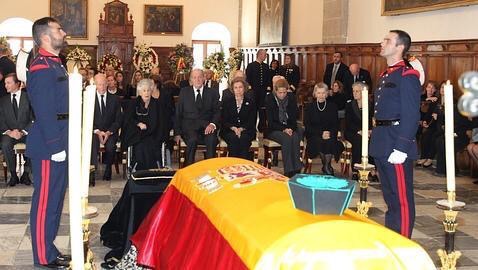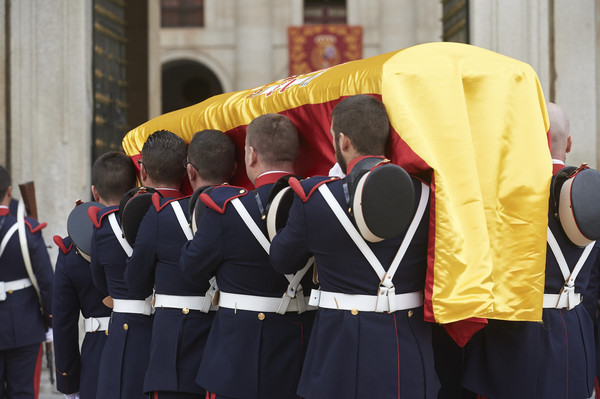 Ocho Guardias Reales portaron el féretro para llevarlo a hombros hasta el interior de la Basílica, donde los Reyes Juan Carlos y Doña Sofia, junto a sus hijas las Infantas Elena y Cristina y la Infanta Margarita, acompañada de su esposo Don Carlos Zurita, esperaban para iniciar la ceremonia religiosa.
