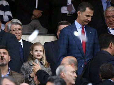 La princesa ha seguido el encuentro con mucha curiosidad, sin parar de preguntar a su padre durante todo el encuentro, y al seleccionador Nacional Vicente del bosque, I Marqués de del Bosque, que estuvo flanqueando a la Princesa todo el partido. Es la primera vez que vemos a la Princesa Leonor fuera de un acto oficial o de los posados en el verano Mallorquín, y también la primera que acude sola con su padre. Da la casualidad, que Don Felipe se estrenó en un acto deportivo precisamente en el Vicente Calderón en un partido Atlético-Real Madrid con 8 años de edad, declarando después del mismo, a preguntas de los periodistas, que era «Del Atlético».