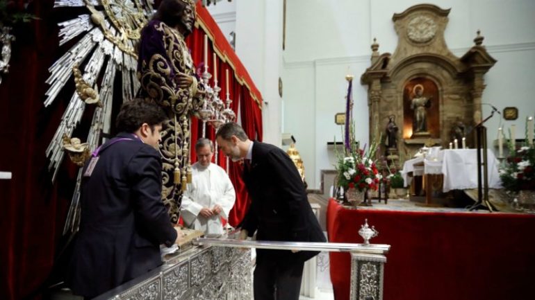 Entre ¡VIVAS AL REY! y ¡VIVAS A ESPAÑA!, Su Majestad el Rey Felipe VI ha sido recibido a su llegada a la Basílica de Jesús de Medinaceli, en el centro de Madrid, para cumplir así con la tradición de la Casa Real, que desde finales del siglo XVII (1682) se lleva realizando y en la que un miembro de la Familia Real acude a venerar la imagen del Cristo el primer viernes del mes de marzo. Una tradición, que se lleva a cabo desde que la imagen fuera recuperada de manos de los invasores musulmanes.