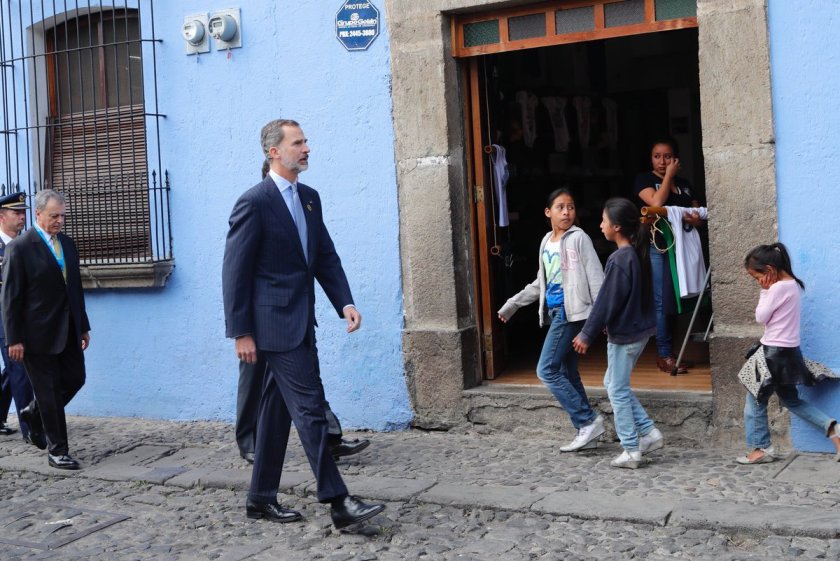 SM el Rey Felipe VI, recibió la llave de honor de Antigua, a su llegada para participar en la XXVI Cumbre Iberoamericana de jefes de Estado y de Gobierno, y al día siguiente el homenaje y cariño de sus ciudadanos. En su recorrido, puedo ver la monumental Plaza Central, mezclándose con viandantes, algún grupo de turistas y los vendedores ambulantes.