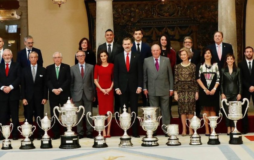 La Familia Real, ha entregado esta mañana en el Palacio Real de El Pardo, los Premios Nacionales del Deporte 2017. Los Reyes Felipe VI y Letizia, a quienes acompañaron SSMM los Reyes Juan Carlos I y Sofia y SAR la Infanta Doña Elena y SAR la Infanta Doña Pilar, presidieron los galardones que concede el Consejo Superior de Deportes y que reconoce a personas o entidades que, por su directa actividad o iniciativa personal, o como partícipes en el desarrollo de la política deportiva, contribuyen en forma destacada a impulsar o difundir la actividad físico-deportiva.