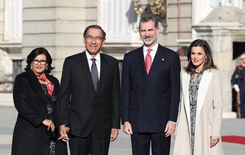 Sus Majestades los Reyes Felipe VI y Letizia, han recibido en el Palacio Real de Madrid al Presidente del Peru, Martín Alberto Vizcarra Cornejo y su esposa, que están realizando una Visita de Estado al Reino de España, durante los días 27 y 28 de febrero, con el objetivo de reforzar las relaciones bilaterales entre ambas naciones hermanas, y que coincide con la inauguración el próximo viernes 28, de la 38ª edición de la Feria Internacional de Arte Contemporáneo-ARCOmadrid, de la que Perú es país invitado.