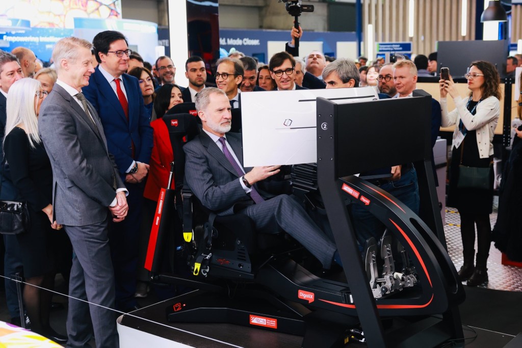 Uno de los momentos más destacados de la visita fue cuando Felipe VI se puso al volante de un simulador de conducción de Fórmula 1 en el estand de la GSMA, organizadora del congreso. El simulador ofreció una experiencia inmersiva, replicando con precisión las condiciones de una carrera real en el circuito de Cataluña. El Rey mostró gran interés en las tecnologías inmersivas y su potencial para revolucionar el entretenimiento y la formación profesional.