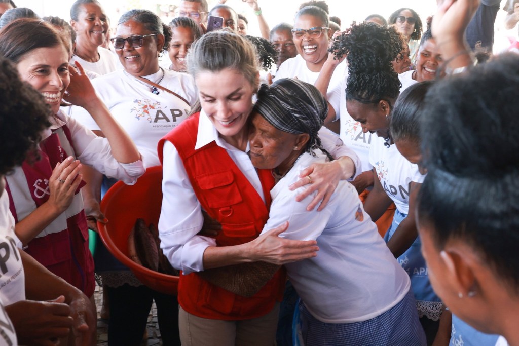 Por la tarde, la Reina Letizia viajó a la isla de San Vicente, donde visitó el Mercado de Pescado de Mindelo. Allí, la esperaban las peixeiras, mujeres dedicadas a la venta de pescado, que han encontrado en la cooperación española una oportunidad para mejorar sus condiciones de trabajo y vida.