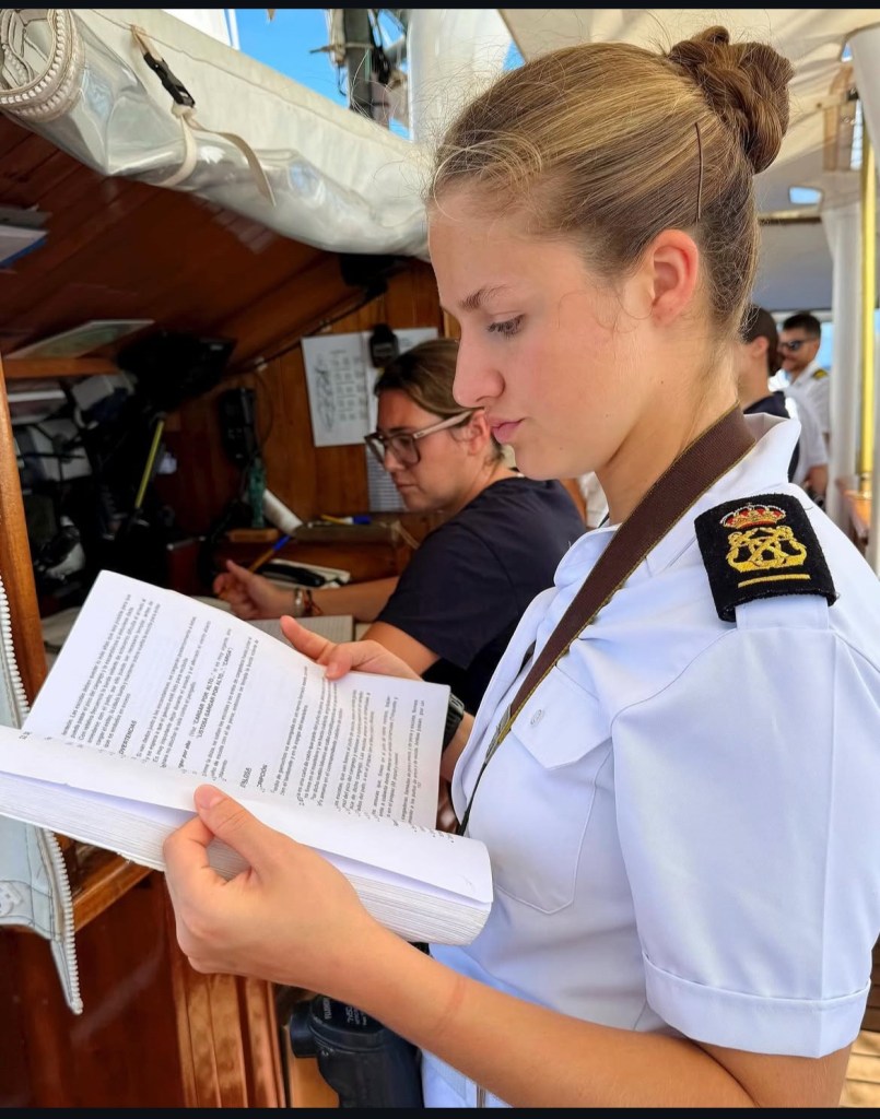 Las imágenes publicadas ayer por la Casa Real ofrecen una ventana al día a día de la Princesa en alta mar. En una de ellas, se la ve encaramada a los mástiles, asegurando velas con destreza y seguridad, una actividad que exige fuerza, equilibrio y valentía. En otra, aparece en la cubierta, ataviada con un mono fluorescente, participando en maniobras que requieren coordinación con sus compañeros. También se la observa en clases teóricas, exponiendo un tema sobre la carrera marinera, lo que refleja su compromiso con la formación académica que complementa la instrucción práctica. Estas escenas no solo destacan su preparación física, sino también su capacidad para integrarse en un equipo donde no hay privilegios, solo camaradería y esfuerzo compartido.