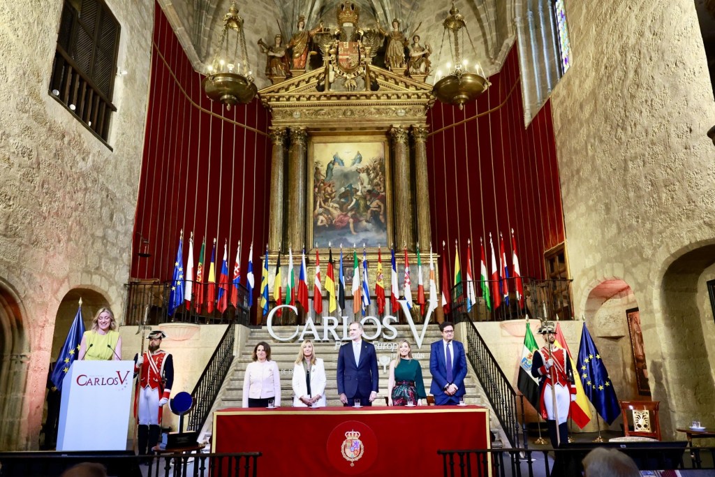 En el Real Monasterio de San Jerónimo de Yuste, en la comarca cacereña de La Vera, se celebró hoy la XVIII edición del Premio Europeo Carlos V, en un acto presidido por el Rey Felipe VI. La ceremonia, que coincide con la conmemoración del Día de Europa, reunió a autoridades nacionales e internacionales en un enclave cargado de simbolismo, al ser el lugar elegido por el emperador Carlos V para pasar sus últimos días tras abdicar la Corona.