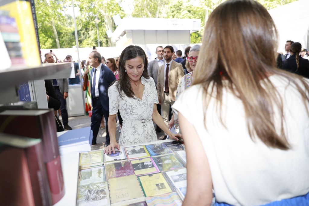 Otro instante memorable tuvo lugar cuando la Reina se encontró con un grupo de ancianos que participaban en un taller de escritura creativa organizado por la Asociación Argadini, dentro del programa “El vaivén de la Feria”. Los mayores, algunos de los cuales llevaban años asistiendo al evento, compartieron con Letizia sus experiencias y recuerdos de ediciones pasadas. La Reina escuchó con atención, preguntando sobre sus escritos y el impacto de la literatura en sus vidas, un gesto que subrayó su capacidad para conectar con generaciones distintas. Este encuentro fue especialmente significativo, ya que la Feria no solo es un mercado de libros, sino también un espacio de inclusión y diálogo intergeneracional.