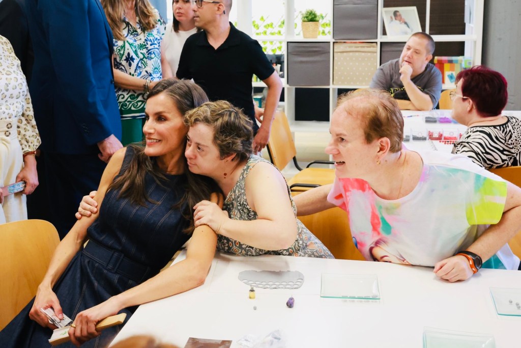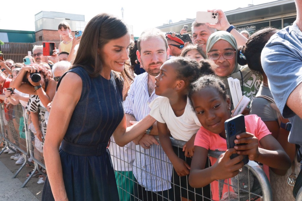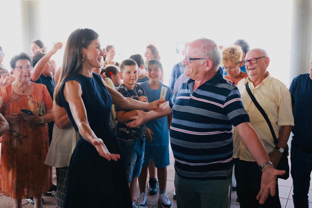 Uno de los momentos más emotivos tuvo lugar en el Centro Cívico, donde los Reyes se reunieron con el Grupo Motor del 50º Aniversario, compuesto por una treintena de vecinos de entre 60 y 90 años que fueron pioneros en el asentamiento de Badia en los años setenta. Estos residentes, muchos de ellos llegados de otras regiones de España, compartieron con Felipe VI y Letizia sus recuerdos de las luchas vecinales para conseguir servicios básicos como escuelas, centros de salud y transporte. La Reina, atenta y cercana, recibió un regalo especial: un llavero elaborado por los alumnos del Servicio Ocupacional Pere Claver, un centro que promueve talleres para jóvenes, incluidos colectivos de migrantes. El detalle, parte de una colección llamada Endorphins, arrancó una sonrisa a doña Letizia, quien no dudó en sostener un abanico entregado por una vecina para mitigar el calor.