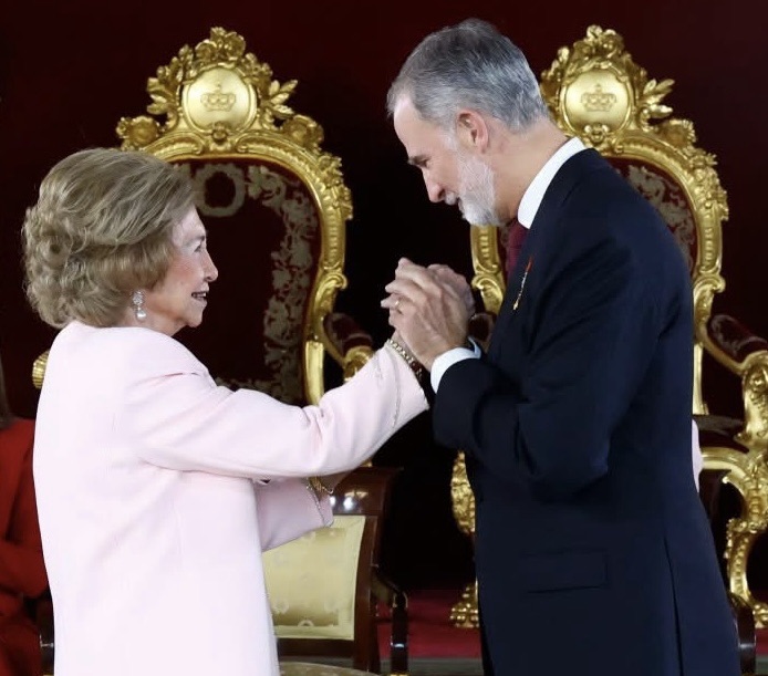 El acto estuvo marcado por un reconocimiento especial a la Reina Sofía, a quien el Rey dirigió palabras de profundo afecto y gratitud. La definió como “una vida entera de servicio ejemplar y de lealtad a España y a la Corona”, apoyando con convicción la apuesta por la apertura democrática y las libertades. El Rey destacó el compromiso sostenido de la Reina durante décadas, “ejercido con un profundo sentido del deber, todavía hoy vigente”. La entrega del Toisón de Oro a la Reina representa así no solo un homenaje personal, sino un reconocimiento simbólico a una trayectoria dedicada al fortalecimiento de la democracia española.